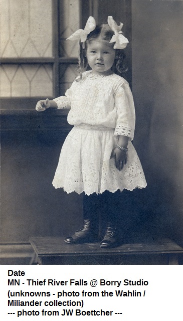 | UNKNOWNS - Even the pictures which have names are not known who the people are or how they were known by the family. The photos in this group would most likely be from the Evansville, Theif River Falls or Fosston area. |