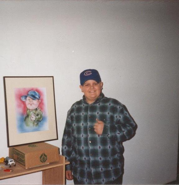 Posing with his caricature