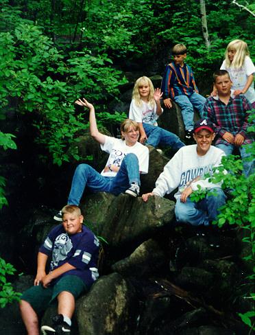 We were on a bike path, someone got aways ahead and stopped at this little creek. Then everyone was climbing on the rocks, and we got them to pose for a second.